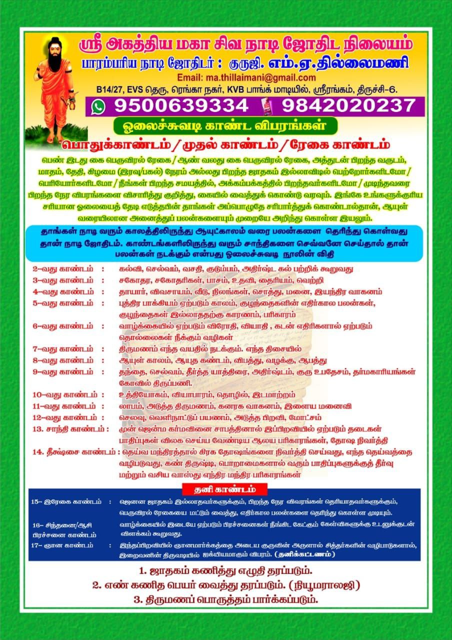புகழ்பெற்ற குருஜி தில்லைமணி அவர்களால் உங்களிடம் கொண்டு வரப்பட்ட நாடி ஜோதிடம் பற்றிய இந்த விரிவான வழிகாட்டிக்கு வரவேற்கிறோம். இந்த கட்டுரையில், நாடி ஜோதிடத்தின் கண்கவர் உலகம், அதன் தோற்றம், கொள்கைகள் மற்றும் அது உங்கள் வாழ்க்கையில் மதிப்புமிக்க நுண்ணறிவுகளை எவ்வாறு வழங்குகிறது என்பதை ஆராய்வோம்..